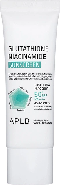 APLB Glutathione Niacinamide SPF Cream 40 ml – rozświetlający, nawilżający krem z filtrem przeciwsłonecznym, który chroni skórę przed szkodliwym promieniowaniem UV, jednocześnie poprawiając jej blask i koloryt. Wzbogacony glutationem i niacynamidem , pomaga ujednolicić koloryt cery, zredukować matowość i zapewnić gładkie, promienne wykończenie. Lekka, nietłusta konsystencja łatwo się wchłania, nie pozostawiając białego nalotu, dzięki czemu idealnie nadaje się do codziennego stosowania pod makijaż lub samodzielnie, aby uzyskać naturalny blask.