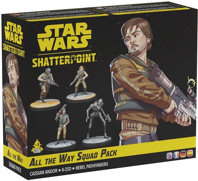 Star Wars: Shatterpoint – All the Way Squad Pack to rozszerzenie, które wprowadza do gry oddział składający się z czterech nowych jednostek. W zestawie znajdują się kultowe postacie znane z Rogue One: Cassian Andor, K-2SO oraz Rebel Pathfinders. Dodatek zawiera wszystkie elementy potrzebne do włączenia ich do Twojej drużyny i rozszerzenia taktycznych możliwości na polu walki.