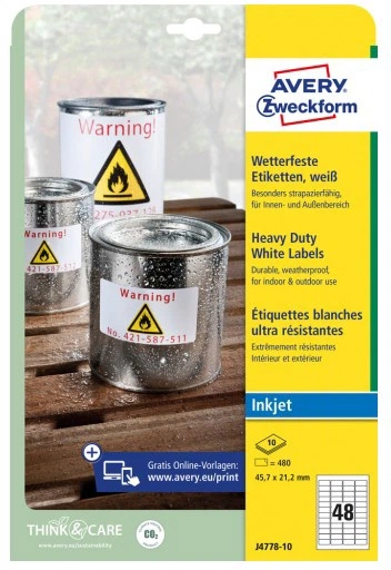 Wodoodporne samoprzylepne etykiety Avery Zweckform 45.7×21.2 mm Białe 480 szt. J4778-10 (4004182074893)