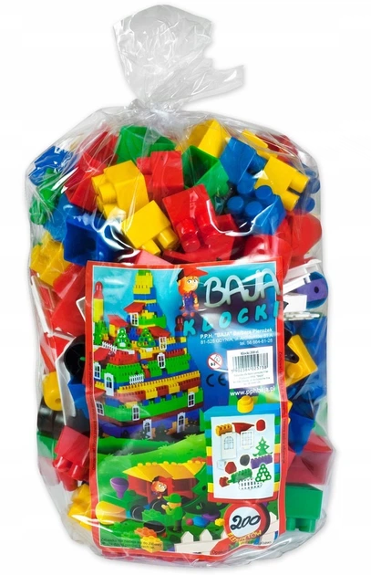 Klocki Baja 200 elementów to bogaty zestaw, który pozwala dzieciom rozwijać wyobraźnię i zdolności manualne. Zawiera wiele kolorowych elementów w różnych kształtach, idealnych do budowania kreatywnych konstrukcji. Klocki są wykonane z trwałego i bezpiecznego materiału, odpowiedniego dla małych dzieci. Każdy element ma zaokrąglone krawędzie, co zwiększa bezpieczeństwo podczas zabawy. Zabawa klockami wspiera naukę kolorów, kształtów oraz logiczne myślenie. Dzieci mogą tworzyć budowle, pojazdy, zwierzęta i wiele innych pomysłowych projektów. Zestaw rozwija cierpliwość, koncentrację i zdolności planowania. Klocki są lekkie i łatwe do przenoszenia, a praktyczne opakowanie ułatwia przechowywanie. Zestaw pozwala na zabawę indywidualną, jak i w grupie, rozwijając współpracę i komunikację. To idealny sposób na łączenie nauki z przyjemnością twórczej zabawy.