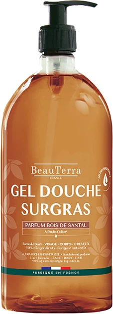 Żel pod prysznic BeauTerra Surgras Bois de Santal zamienia codzienną kąpiel w prawdziwy rytuał pielęgnacji i relaksu. Delikatna formuła bez mydła została wzbogacona o rozpuszczalny w wodzie olej z oliwek oraz glicerynę, które pomagają nawilżać skórę i chronić jej naturalną barierę hydrolipidową.