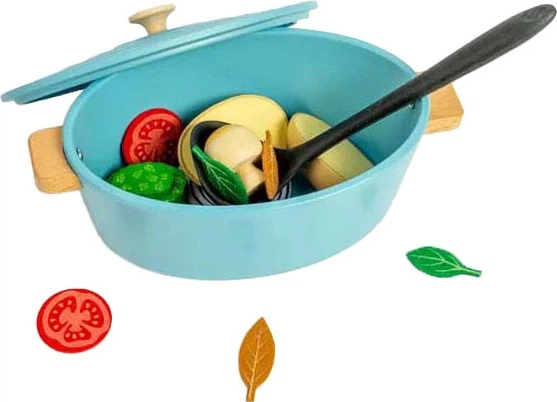 Tak, Szefie! Przygotuj pyszny posiłek dla rodziny z naszym zestawem do zabawy w zapiekankę w rozmiarze dziecięcym. Podnieś pokrywkę stylowego, niebieskiego naczynia, a znajdziesz w nim zapas drewnianych warzyw, w tym cebulę, brokuły, pomidory i wiele innych. Ten realistyczny zestaw do zabawy zawiera również chochlę, dzięki której dzieci mogą nakładać pyszne zapiekanki.