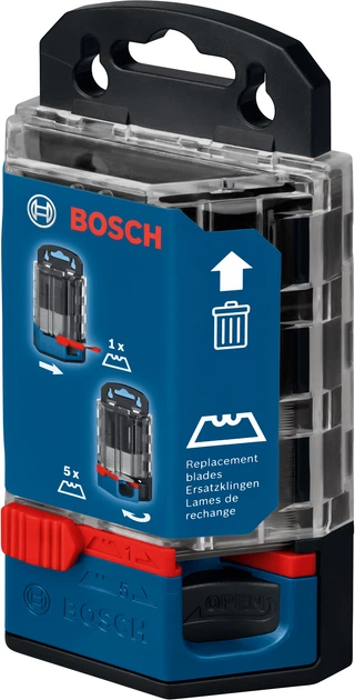 Dyspenser na ostrza Bosch Professional zawiera 50 wymiennych ostrzy, kompatybilnych ze wszystkimi standardowymi nożami uniwersalnymi Bosch Professional. Wysokiej jakości ostrza ze stali S2-CVM zapewniają czyste i precyzyjne cięcie. Kompaktowy dyspenser o przemyślanym designie posiada mechanizm wysuwania, który umożliwia wyjęcie jednego ostrza lub pięciu ostrzy jednocześnie. Zużyte ostrza można bezpiecznie przechowywać w górnej części dyspensera do późniejszej utylizacji.