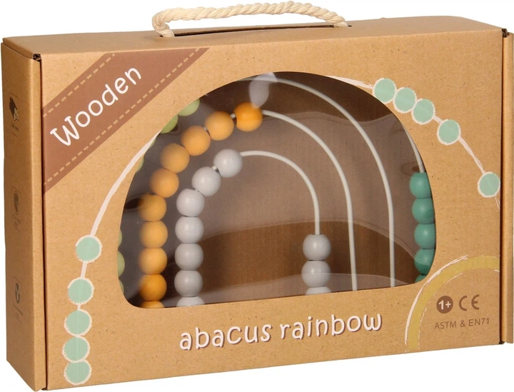Ćwicz liczenie z tą drewnianą ramką do liczenia! Platforma podtrzymująca cztery łuki jest wykonana z drewna, podobnie jak okrągłe koraliki. Każdy łuk ma inny kolor: zielony, jasnozielony, ochrowy i szary.