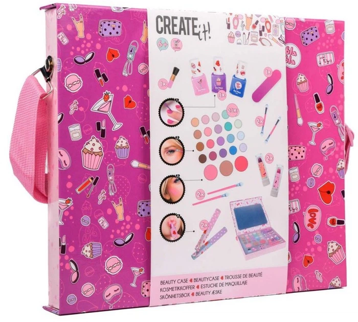 Дзеркало, дзеркало у валізі... з косметичним футляром Create it! ви завжди почуватиметеся найкрасивішою! Цей стильний косметичкий футляр відкривається зручним дзеркальцем, ідеальним для всіх ваших макіяжних моментів та швидких корекцій. Ідеально підходить для самостійного використання або спільного використання з найкращою подругою для креативного сеансу краси.