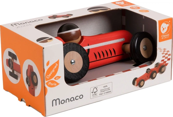 Autko Classic World Drewniany samochód Monaco 6020434 (6927049022333) Ten piękny, drewniany samochód wyścigowy nosi nazwę legendarnego toru w Monaco, co odzwierciedla jego sportowy, a zarazem elegancki styl. Wykonany z najwyższej jakości drewna, pojazd zachwyca dbałością o detale i klasyczną linią nadwozia w stylu vintage. Dzięki ergonomicznemu kształtowi jest łatwy do chwytania i prowadzenia przez małe rączki dziecka. Trwała konstrukcja i ekologiczne materiały gwarantują bezpieczną zabawę przez długi czas. To nie tylko świetna zabawka, ale także piękny element dekoracyjny w pokoju dziecka ceniącego klasykę.