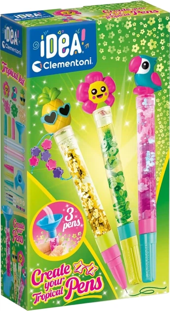 Clementoni „Pen Creator Studio Tropical” z serii „Idea” to oryginalny zestaw w stylu tropikalnym do tworzenia unikalnych wzorów długopisów. „Pen Creator Studio” zapewni dziecku mnóstwo radości z tworzenia długopisów, a także rozwinie jego zdolności twórcze i wyobraźnię.