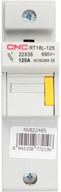 Uchwyt bezpiecznika 1P, 690 V, 125 A, montaż na szynie DIN, odpowiedni do bezpiecznika 22 x 58.
