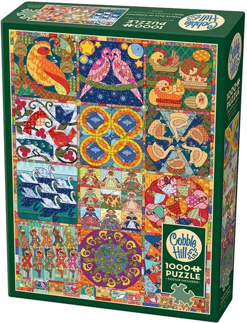 Od jednej kuropatwy na gruszy do dwunastu bębniarzy grających na bębnach – ciesz się "Puzzlami Dwunastu Dni Świąt" składającymi się z 1000 kolorowych elementów. Zaprojektowane przez Cobble Hill Creations.