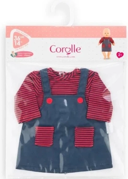 Urocza sukienka w paski dla lalek z kolekcji Corolle Mon Grand Poupon o wysokości 36 cm. Wykonana z miękkiej bawełny, idealna do przebierania ulubionej lalki. Nadaje się dla dzieci od 3. roku życia.