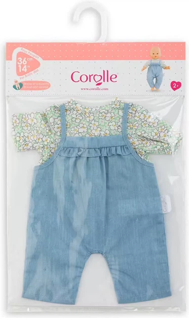 Zestaw ubranek dla lalki, składający się z bluzki i ogrodniczek, przeznaczony jest dla lalek Corolle Mon Grand Poupon lub innych lalek o wysokości 36 cm. Ubranko wykonane jest z bawełny i odpowiednie dla dzieci od 2. roku życia.