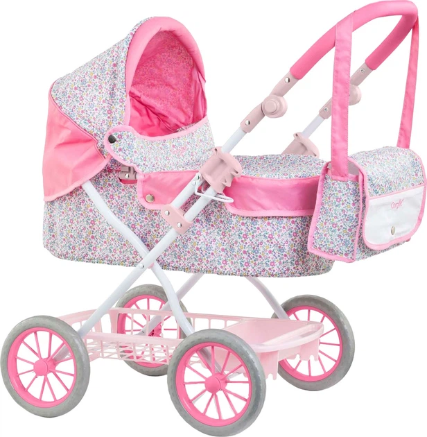 Czas na spacer! Jaką radość sprawia spacer z tym w pełni wyposażonym wózkiem w kwiatki. Idealny do zabrania dużej lalki o wysokości od 36 do 52 cm na świeże powietrze. Dzięki regulowanej wysokości rączki wózek można dostosować do wzrostu rosnącego dziecka! Dziecko może wybrać najbardziej odpowiednią wysokość rączki za pomocą dwóch przycisków. Wysokość można regulować w zakresie od 36 cm do około 75 cm. Wózek dla lalek z składanym daszkiem i torbą na ramię. Gdy pogoda jest szczególnie ładna i ciepła, daszek można złożyć i zdjąć za pomocą przycisków. Zapobiega to poparzeniu słonecznemu lalki! Ten wesoły wózek dla lalek jest wyposażony w torbę na ramię, w której zmieści się wszystko, czego potrzebuje lalka, oraz wyjmowany kosz na jeszcze więcej akcesoriów! Kompaktowe przechowywanie i transport. Szybko i łatwo się składa, co ułatwia transport. Ponadto wózek dla lalek zajmuje bardzo mało miejsca podczas przechowywania. Gwarantujemy wspaniałe, długie spacery dla Twojej dużej lalki Corolle! Lalka sprzedawana oddzielnie. Ten produkt jest zabawką; nie jest przeznaczony dla dzieci. Wymiary po złożeniu: 62 x 70 x 40,5 cm. Odpowiedni dla dzieci w wieku od 3 lat.