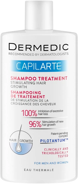 Dla zwiększenia skuteczności zaleca się stosowanie wraz z serum Dermedic Capilarte, które stymuluje i odnawia wzrost włosów.