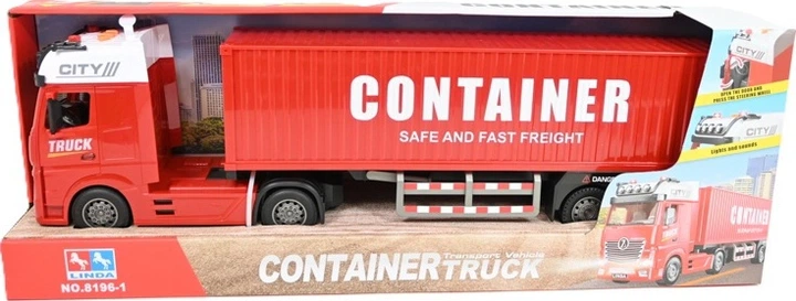 Ciężarówka Dromader z kontenerem to funkcjonalny pojazd, który urozmaici każdą zabawę w transport. Model posiada odczepiany kontener, co umożliwia różnorodne scenariusze zabawy. Efekty świetlne i dźwiękowe dodają realizmu i sprawiają, że pojazd wygląda jak prawdziwa ciężarówka drogowa. Sygnały dźwiękowe aktywowane są za pomocą przycisku umieszczonego na kabinie. Solidna konstrukcja gwarantuje trwałość nawet przy intensywnym użytkowaniu. Duże koła zapewniają stabilność oraz łatwe przemieszczanie się. Kontener można załadować drobnymi przedmiotami, co dodatkowo rozwija wyobraźnię. Pojazd zachęca do zabawy w logistykę i transport. Intensywna kolorystyka sprawia, że ciężarówka prezentuje się bardzo atrakcyjnie. Zabawa wspiera rozwój kreatywności oraz zdolności organizacyjnych dziecka. To świetny pomysł na prezent dla małych fanów pojazdów specjalistycznych.