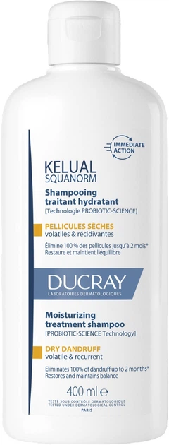 Szampon przeciwłupieżowy Ducray Kelual Squanorm Moisturizing Treatment Dry Dandruff został opracowany specjalnie z myślą o suchej łupieżu i wrażliwej skórze głowy. To nowoczesna formuła inspirowana działaniem probiotyków, która skutecznie eliminuje widoczny łupież już od pierwszego użycia oraz pomaga zapobiegać jego nawrotom nawet do 2 miesięcy.