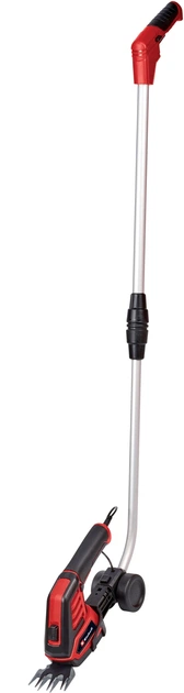 Zamknięta obudowa reduktora nasadek chroni przed kontaktem z olejem przekładniowym, a wymiana nasadek jest prosta i odbywa się całkowicie bez użycia narzędzi, za pomocą jednego naciśnięcia przycisku. Nasadka do trawy o szerokości cięcia 70 mm idealnie nadaje się do pielęgnacji krawędzi trawnika. Nasadka do przycinania krzewów tnie gałęzie o grubości do 8 mm i jest szczególnie odpowiednia do pielęgnacji żywopłotów i krzewów o długości cięcia 110 mm. Miękka rękojeść zapewnia pewny chwyt, dzięki czemu kompaktowe nożyce są wygodne w trzymaniu nawet podczas długotrwałego użytkowania. W zestawie znajduje się teleskopowy przedłużacz, który zapewnia praktyczne i wygodne użytkowanie. Akumulator 2,0 Ah jest zamontowany na stałe. W zestawie znajduje się kabel do ładowania akumulatora.