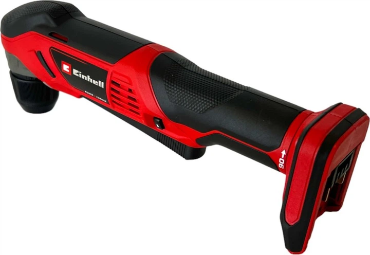 Akumulatorowa wiertarka kątowa Einhell TE-AD 18 Li - Solo to wygodne narzędzie do wkręcania śrub i wiercenia w trudno dostępnych miejscach. Dzięki kompaktowej konstrukcji kątowej i obrotowemu uchwytowi akumulatora wiertarka kątowa może z łatwością dostać się do narożników i trudno dostępnych miejsc, takich jak płytkie szuflady. Duża powierzchnia przełącznika oznacza, że wiertarkę kątową można trzymać na różne sposoby, dzięki czemu urządzenie jest wygodne w obsłudze z każdej pozycji.