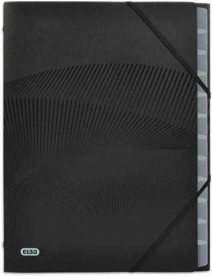 Organizer-segregator Elba Osmose A4 z 12 sekcjami — praktyczna teczka do wygodnego przechowywania i sortowania dokumentów formatu A4. Wykonana z wytrzymałego polipropylenu, który zapewnia niezawodną ochronę dokumentów przed uszkodzeniami. Teczka wyposażona jest w trzy klapy oraz 12 przezroczystych sekcji umożliwiających szybki dostęp do dokumentów. Dla bezpieczeństwa zawartości zastosowano elastyczną gumkę‑zamknięcie. Matowy czarny design łączy styl i funkcjonalność. Idealna do biura, nauki lub archiwizacji dokumentów.