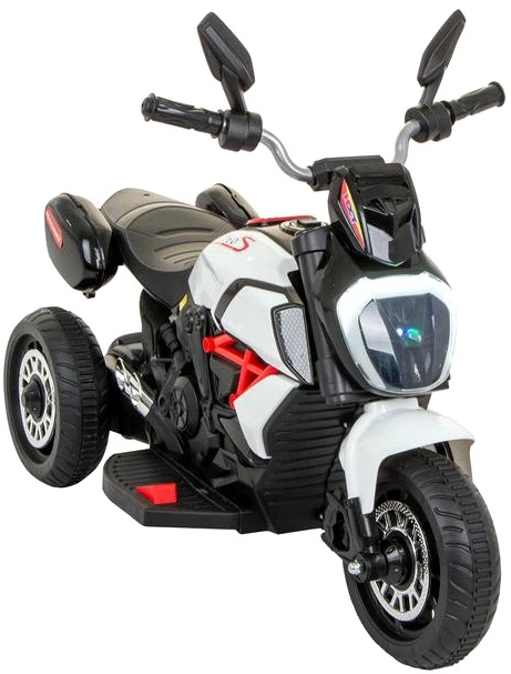 Funkcje: - Pojazd odpalany jest przez przycisk - Światło LED przednie - 2 biegi: Do przodu i tyłu - Odtwarzacz wbudowanej muzyki - Pedał gazu – nożny - Światło i muzyka dają jeszcze lepszą zabawę