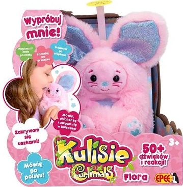 Króliczek Flora to nowość w rodzinie Kulisiów. Słodki i uroczy króliczek, który zauroczy dzieci zakrywając się uszkami i reagując na nowy punkt dotykowy na stópce.