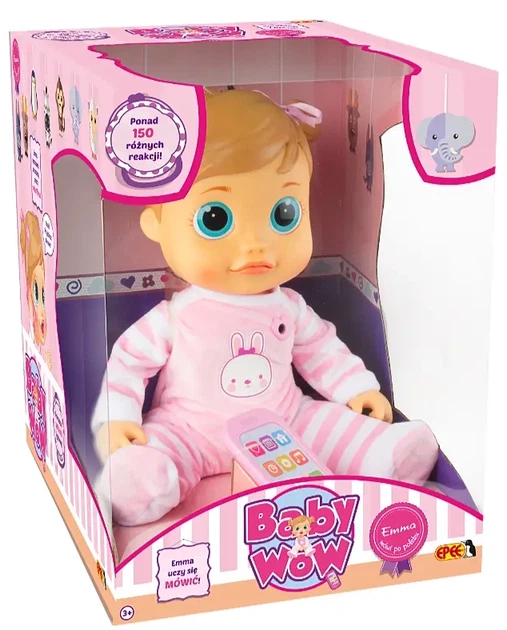Emma to nie jest zwykła zabawka. To zaawansowana technologicznie, interaktywna towarzyszka, która przechodzi przez kolejne etapy rozwoju zupełnie jak prawdziwe dziecko. Najbardziej niesamowitą cechą Emmy jest to, że podczas mówienia naprawdę porusza usteczkami, co nadaje zabawie niespotykanego dotąd realizmu.