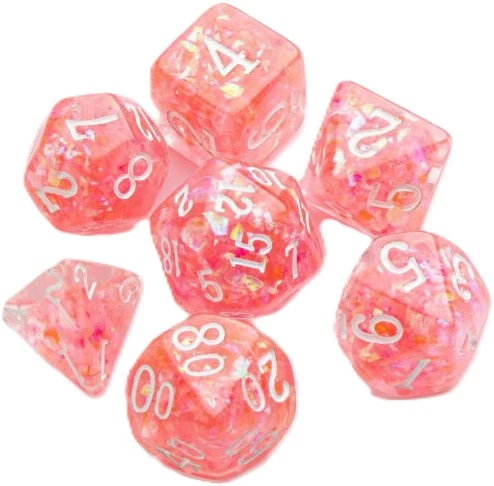 Набір містить такі гральні кубики: D4, D6, D8, D10, D00, D12, D20.