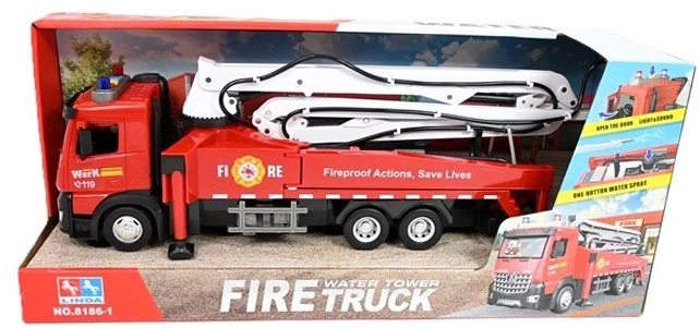 Podaruj dziecku wrażenie prawdziwej akcji ratowniczej! Jasny i szczegółowo wykonany wóz strażacki posiada mechanizm inercyjny, efekty świetlne i dźwiękowe, a także ruchomą drabinę, która wysuwa się, podnosi, reguluje wysokość i obraca o 180°.