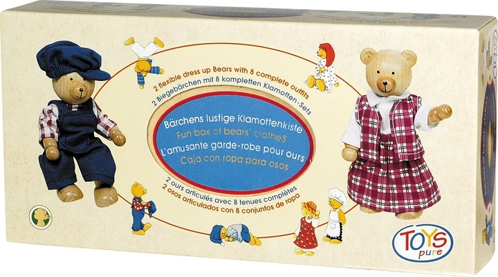 • Wygodne przechowywanie: Zestaw znajduje się w praktycznym, drewnianym pudełku z przesuwaną pokrywką. Pudełko jest podzielone na 4 przegródki, co pozwala na schludne przechowywanie figurek i sortowanie ubrań, rozwijając umiejętności organizacyjne.