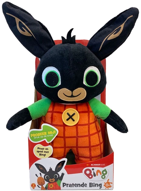 Gadający Bing to mięciutka i przytulna pluszowa zabawka wykonana z miękkiego materiału. Wystarczy nacisnąć przycisk, a Bing uśmiechnie się i zacznie do Ciebie mówić.
