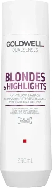 Szampon przeciw żółknięciu Goldwell Dualsenses Blondes & Highlights Anti-Yellow został stworzony z myślą o włosach blond, rozjaśnianych i z pasemkami. Skutecznie neutralizuje niepożądane żółte tony, przywracając chłodny, świeży odcień oraz zdrowy blask pasm.