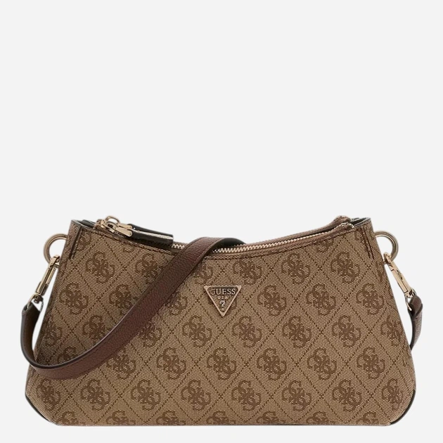 Torebka bagietka damska mała ze sztucznej skóry Guess to stylowy, codzienny model dla kobiet wykonany z trwałego i przyjemnego w dotyku poliuretanu. Lekki materiał o przyjemnej fakturze i wyrazisty wzór nadają torbie indywidualności i nowoczesnego charakteru. Model posiada dwa główne przedziały zamykane na zamki oraz długie uchwyty do wygodnego noszenia na ramieniu lub przewieszonej przez ramię. Trapezowy kształt oraz eleganckie logo marki czynią torbę uniwersalnym dodatkiem do codziennego użytku i stylowych stylizacji.