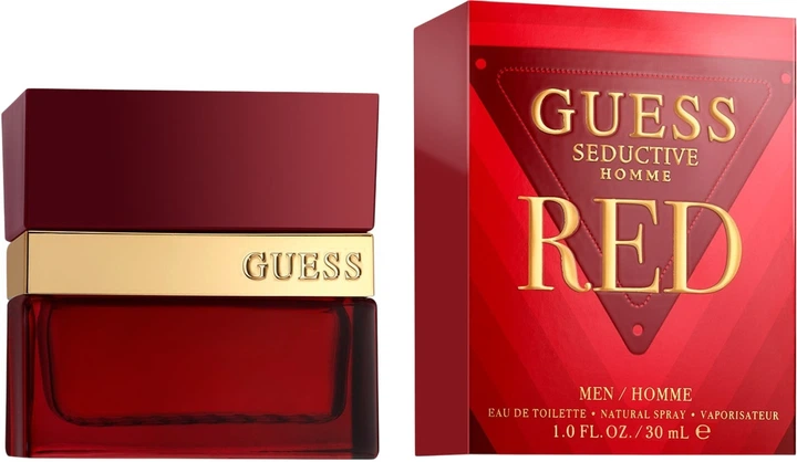 Guess Seductive Homme Red, 30 ml, woda toaletowa dla mężczyzn, Pikantny, prawdziwie męski zapach ukryty w efektownym czerwonym flakonie to woda toaletowa Guess Seductive Homme Red dla panów. Uwodzicielski, porywający zapach, który będzie wiernym towarzyszem na każdą okazję. Zawiera nuty korzenne i owocowe, uosabiając nowoczesną męskość i namiętność. Kompozycja zapachowa: przyjemna świeżość skórki cytryny i cynamonu, połączona z nutą dzikiego figowca. Seductive Homme Red zaskakuje następnie cudownym bukietem kwiatów, w którym znajdują się kwiaty pomarańczy i geranium, zrównoważone przez kumkwat. Na skórze pozostaje zapach wanilii, chrupiącego bursztynu i indyjskiego drzewa sandałowego.