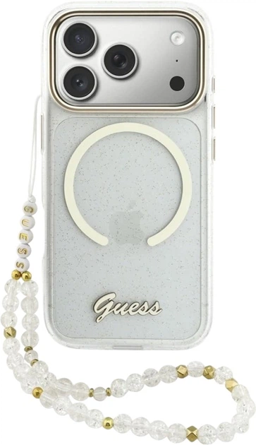 Etui Guess IML Glitters Script Strap MagSafe do Apple iPhone 17 Pro Max Transparent (GUHMP17X5HTGSMSH)