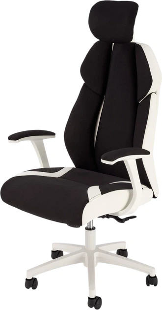 Fotel biurowy Halmar Chrono w biało-czarnej kolorystyce to nowoczesne rozwiązanie do stylowego biura. Kontrastowe połączenie barw nadaje mu elegancki i dynamiczny wygląd. Wyprofilowane oparcie wspiera naturalne ułożenie kręgosłupa, zwiększając komfort podczas pracy. Miękkie siedzisko zapewnia wygodę nawet przy długotrwałym użytkowaniu. Podłokietniki poprawiają ergonomię i odciążają ramiona. Regulacja wysokości pozwala idealnie dopasować fotel do biurka. Stabilna podstawa oraz wytrzymałe kółka gwarantują płynność ruchu i bezpieczeństwo. Chrono to połączenie nowoczesnego designu, funkcjonalności i komfortu, które sprawdzi się zarówno w biurze, jak i domowym gabinecie.