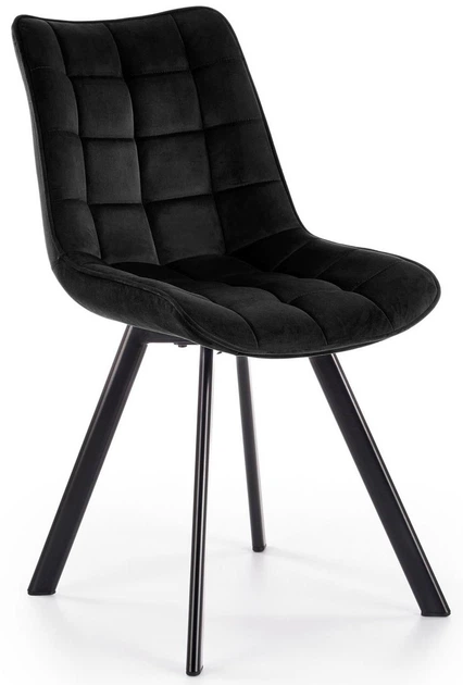 K332 to eleganckie, a zarazem nowoczesne krzesło marki Halmar przeznaczone do niebanalnie urządzonych wnętrz. Siedzisko w formie kubełka tapicerowane jest przyjemną w dotyku tkaniną welwetową, pod którą znajduje się kilkucentymetrowa warstwa pianki. Front oparcia oraz siedziska posiada pikowany wzór w kształcie niewielkich kwadratów. Krzesło osadzone jest na metalowych nogach malowanych proszkowo na kolor czarny, a ich rozchodząca się ku dołowi konstrukcja zapewnia smukły wygląd oraz stabilność podczas użytkowania. Krzesło wykonane jest z materiałów wysokiej jakości, a jego montaż polega jedynie na dokręceniu nóg.