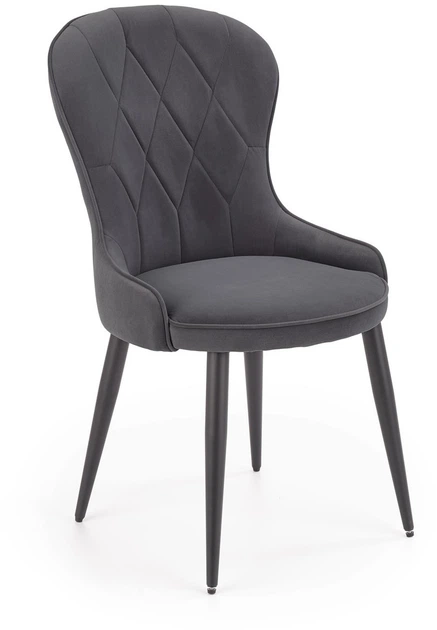 Dodaj odrobinę luksusu do swojego wnętrza z krzesłem K366, które łączy w sobie nowoczesny design oraz funkcjonalność. To stylowe krzesło tapicerowane popielatym velvetem z ozdobnym pikowaniem na oparciu to doskonały wybór dla osób, które cenią sobie wygodę i estetykę. Zaokrąglone oparcie oraz miękkie siedzisko sprawiają, że każda chwila spędzona w tym krześle będzie prawdziwą przyjemnością.