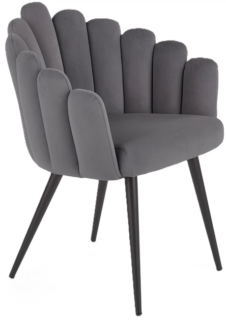 Ciesz się wyjątkowym designem krzesła K410, które łączy w sobie nowoczesność i stylową elegancję. To krzesło tapicerowane miękkim welurem w popielatym odcieniu zachwyca swoim kształtem, przypominającym muszlę. Jego ergonomiczne oparcie oraz wygodne siedzisko sprawiają, że każda chwila spędzona w nim przynosi prawdziwą przyjemność.