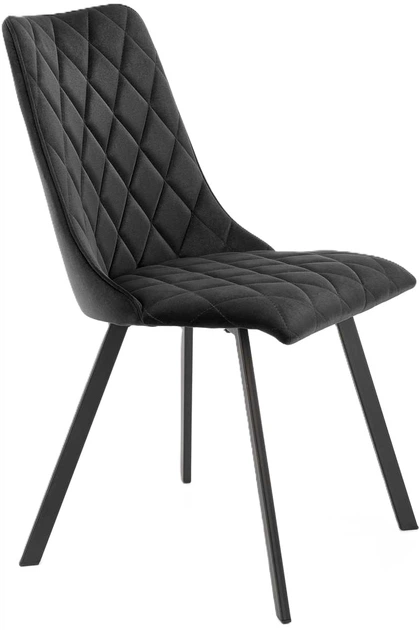 Czarne, tapicerowane krzesło K450 wykonane zostało z wykorzystaniem miłej w dotyku i delikatnie cieniującej tkaniny velvetowej Bluvel 19. Mebel wyposażony został w czarne, proste, malowane proszkowo, metalowe stópki dające solidne podparcie przeszywanemu od wewnątrz siedzisku oraz oparciu. Elegancka forma zestawu pozwala na jego wyeksponowanie niemal w każdym stylu wyposażeniowym wnętrz. Niewielkie wymiary krzesła sprawiają, że odnajdzie się z powodzeniem nawet w niewielkich pomieszczeniach. Mebel dostarczany jest w wersji wymagającej niewielkiego montażu.