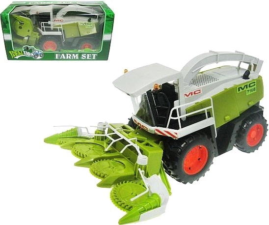 Model kombajnu kukurydzianego w dużym, 34-centymetrowym formacie przyciąga uwagę masywną konstrukcją inspirowaną prawdziwymi maszynami rolniczymi. Wyraziste zielone elementy wyróżniają zabawkę, a duże koła ułatwiają poruszanie nią po różnych powierzchniach.