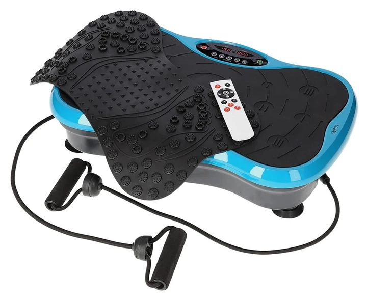 Platforma pozwala na trening na 3 stopniach intensywności. Stanie na środku urządzenia symuluje chód, zachowanie niewielkiego odstępu między stopami powoduje, że uprawiasz jogging, a szerokie rozstawienie stóp to symulacja sprintu. Urządzenie posiada 99 poziomów prędkości, w połączeniu z minutnikiem, który posiada komputer SVP01 daje gwarancje, że sprzęt dopasujemy do swoich oczekiwań. W zestawie dołączone są taśmy oporowe, które urozmaicą i dopełnią trening. Ponadto platforma idealnie pobudza krążenie krwi, rozluźnia i wspomaga regenerację mięśni. Dodatkowym plusem jest mata do akupresury dołączona do zestawu. Matę zakłada się na platformę. Stworzona została, w innowacyjnym systemie akupresury dwustrefowej. Posiada wypustki wyższe i niższe, dzięki temu możemy ustawieniem stóp regulować posiom masażu. Połączenie wibracji i specjalnych wypustek masujących, znajdujących się na macie, gwarantuje idealny masaż stóp, a w rezultacie całkowite odprężenie.