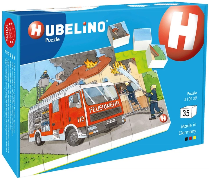 На щастя, пожежна служба швидко прибула на місце події, щоб врятувати мешканців та загасити пожежу. Скільки пожежників ви зможете помітити? Пазли Hubelino поєднують у собі два улюблені дитячі заняття: творче складання блоків та барвисті мотиви пазлів. Знайома система вставки блоків забезпечує необхідну стійкість, а високоякісні друковані блоки ідеально підходять для рук маленьких початківців у складанні пазлів.