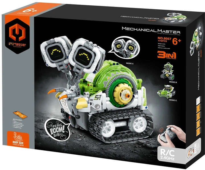 Wejdź do świata przyszłości z zestawem konstrukcyjnym iM.Master 3 w 1. Ten zaawansowany zestaw składa się z 478 elementów, z których można zbudować aż trzy różne roboty – każdy z unikalną konstrukcją i funkcjonalnością. Dzięki zdalnemu sterowaniu na częstotliwości 2.4 GHz oraz możliwości obsługi przez aplikację mobilną, zabawa staje się jeszcze bardziej dynamiczna i interaktywna.