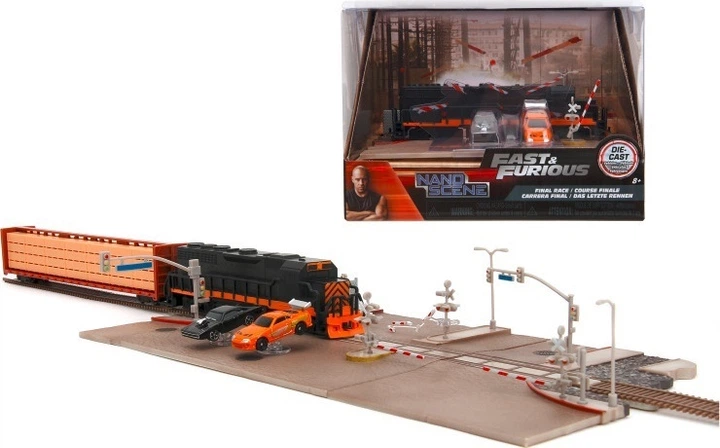 Ta szczegółowa diorama inspirowana filmem „Szybcy i Wściekli” przenosi fanów prosto do jednej z najbardziej emocjonujących scen z udziałem pociągu i błyskawicznego pościgu. Realistyczna makieta ukazuje fragment torów kolejowych z przejazdem i sygnalizacją, a także pociąg towarowy, przy którym ustawiono charakterystyczne pojazdy filmowe. Dzięki niej można odtworzyć niezapomniane momenty z ekranowej serii pełnej adrenaliny i spektakularnych akcji.