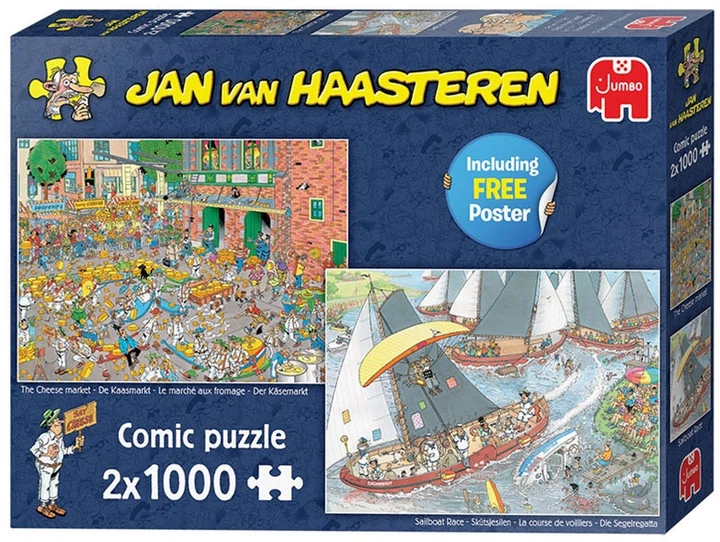 Puzzle Jana van Haasterena to coś więcej niż zwykła układanka: to seria przygodowa ze znanymi bohaterami w niekończącej się scenerii pełnej absurdalnych detali. Odkryj wszystkie szalone przygody rodziny Jana van Haasterena! Jesteśmy dumni, że puzzle są produkowane z recyklingowanej tektury w Europie. Używamy najcieńszego dostępnego ostrza, aby pociąć tekturę na kawałki. Ukończona układanka wygląda niemal bezszwowo. Ciesz się tą łamigłówką Jana van Haasterena!