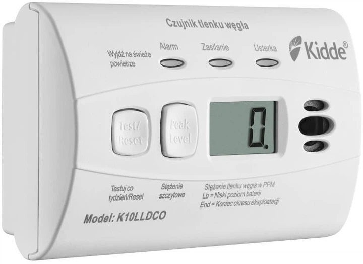 Urządzenie jest wyposażone w przycisk Test/Reset do sprawdzania działania i resetowania sygnału, a także funkcję zapamiętywania wartości szczytowej wykrytego CO. Dodatkowa sygnalizacja ostrzega o awarii lub zakończeniu okresu eksploatacji. Istnieje funkcja powiadamiania o aktywacji alarmu w ciągu ostatnich 14 dni oraz możliwość testowania czujnika za pomocą gazu CO. Taki zestaw funkcji sprawia, że czujnik KIDDE jest skutecznym i wygodnym środkiem ochrony przed zatruciem tlenkiem węgla.