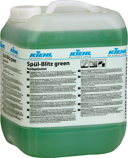 Ręczne mycie naczyń:Dodaj 1–2 krople na 5 l ciepłej wody i umyj przybory kuchenne szczotką lub gąbką. W przypadku uporczywych zabrudzeń namocz naczynia na krótki czas. Na koniec spłucz wodą i pozostaw do wyschnięcia. Zużycie: 0.5‒1.0 ml/l.