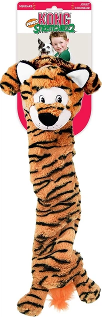 Stretchezz Jumbo Tiger w rozmiarze XL zaspokoi potrzeby nawet największego psa! Jego długie ciało to prawie 60 cm świetnej zabawy!