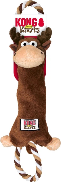 Kong Tugger Knots Moose to wytrzymała, interaktywna zabawka do ciągnięcia i szarpania, którą psy uwielbiają. Każda zabawka ma w środku zawiązane sznurki, które tworzą realistyczne wrażenie, a które wystają poza zabawkę, tworząc uchwyty do ciągnięcia po obu stronach. Ten unikalny design oferuje urzekającą różnorodność tekstur i oporu, które psy uwielbiają – a zabawka zawiera również piszczałkę, aby dodać jeszcze więcej zabawy.
