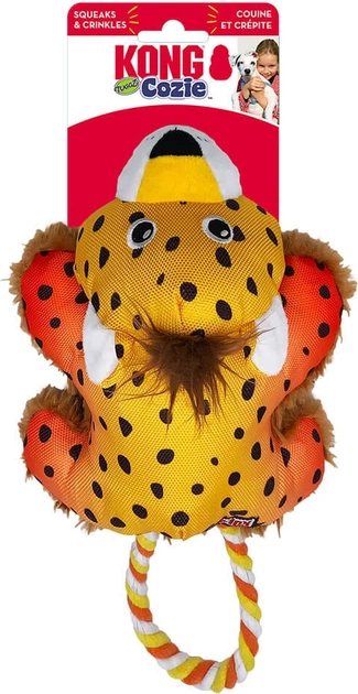 Kong Cozie Tuggz Cheetah to idealny wybór dla psów, które uwielbiają zabawy interaktywne, takie jak przeciąganie, szarpanie czy aportowanie. Ta wytrzymała zabawka została zaprojektowana z myślą o trwałości i bezpieczeństwie, dzięki solidnej konstrukcji i wzmocnionym materiałom.