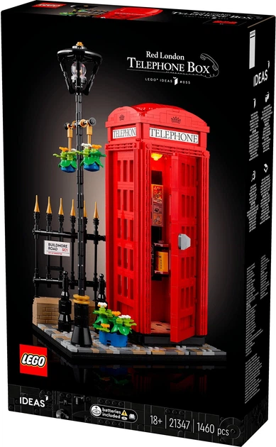 Ikona brytyjskiej kultury zbudowana z klocków Lego. Ten zestaw Ideas odtwarza typową londyńską budkę telefoniczną w klasycznym czerwonym kolorze. Można ją zbudować z tarczą lub przyciskiem telefonicznym w stylu lat 80-tych. Naciśnięcie na dach budki telefonicznej aktywuje dołączony klocek Lego i zapewnia stylowe oświetlenie zestawu. Budka telefoniczna otoczona jest kostką brukową, latarnią uliczną ze stodołami i ogrodzeniem ze znakiem ulicznym. Zestaw ten jest nie tylko stylową dekoracją dla fanów Londynu, ale może być również używany jako stojak na smartfon.